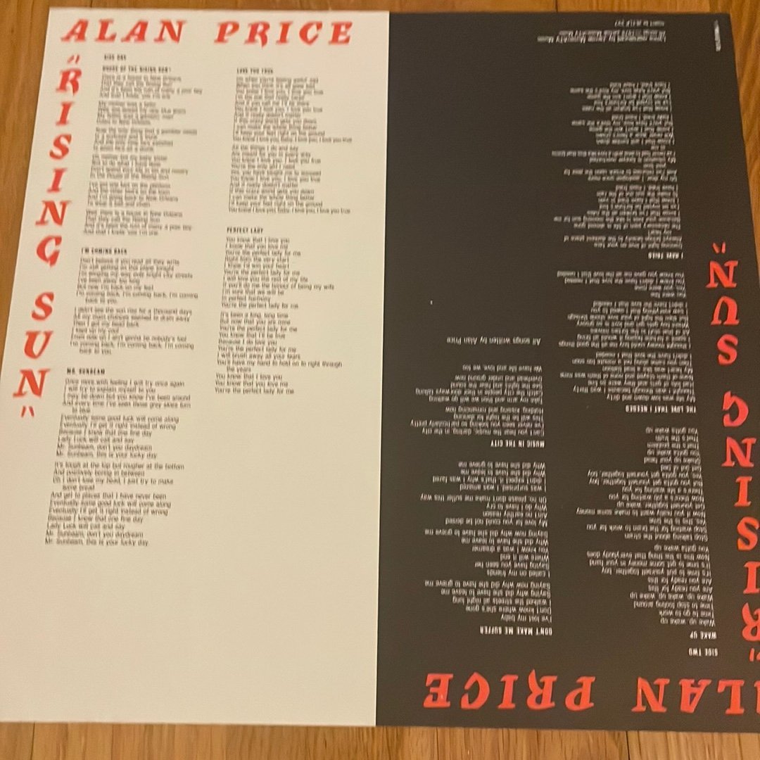 UK-press av Rising Sun med medföljande lyric insert. Ett album från Alan Price, känd som originalmedlem i The Animals.