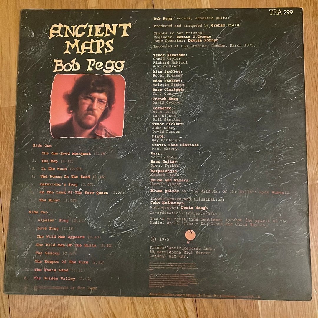Ancient Maps släpptes 1975 och är Bob Peggs enda soloalbum, där traditionell brittisk folk möter ett mer samtida och personligt uttryck. Skivan präglas av akustiska arrangemang, berättande texter och en varm, tidstypisk produktion.